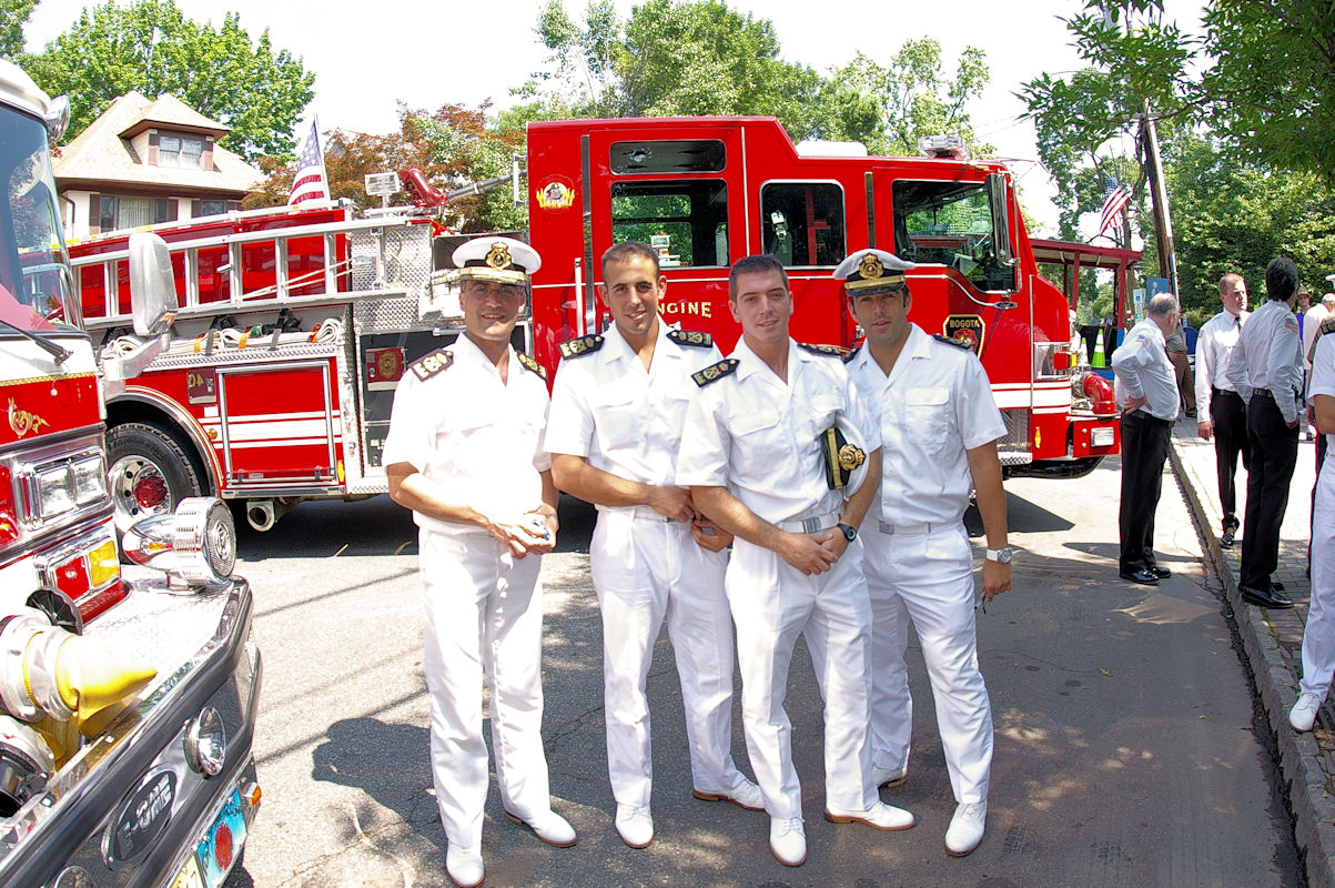 Arriving in Bogota some mentioned the type of house that could be seen, and some just shook the sleep out of their legs. As the approached Borough Hall the Fire Fighters who where there came and welcome the guest to town. hand shakes and smile greeted all parties as thank-you were shared. Former members of the Military found time to talk to the current ones about their experiences even in a different language. Then Andrew Gilbert was brought forward to be introduced to his future. Mr. Gilbert has enlisted into the Marines after High School, so this was a chance for him to met and talk to others that have already earned the right to be called a Marine to find out what he will be looking forward to.
