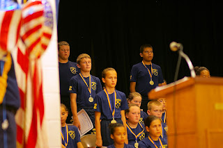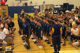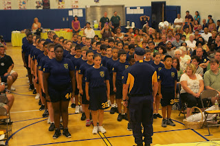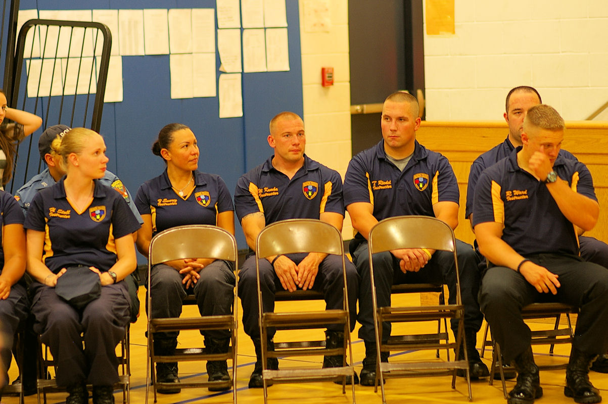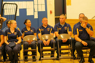 During the field trips for training, the four squads of the Academy would have a relay competition at the end of the day. Alpha Squad winning at the EMS "Hands on CPR" and the Rescue Squad "Rescue line throwing" while Bravo Squad won the Fire Dept. Relay. There were awards for Physical Fitness won by Delta Squad, and Academics won by Charlie Squad. There were some individual awards for Leadership handed out by Sgt. Lynch for the Cadets that took control of a situation on their own. Showing that they have the skills to view a situation and act accordingly. Some of the highest praise from Sgt. Lynch came when he announced the awards for Courage. By Sgt Lynch's definition:" Courage is NOT a lack of fear, but knowing what one's fear is, and facing it in order to do the job that needs to be done." One award was given to Cadet Patrick Brophy who at the beginning of the Academy training talked to Sgt. Lynch to tell him that he was mistaken for signing up for the Academy. Cadet Brophy talked how it was too tough to be on time, and that he thought he could not do the physical requirements needed. Sgt. Lynch told him that it was alright to feel that way, and there was not harm in trying, but if he could give it another chance tomorrow. After seven more tomorrows Cadet Brophy stayed with his class to the end. Then there was Cadet Kristin Sybel, who on the first day was asked to be looked at for her own safety. Sgt Lynch thought the first day " Boot Camp" had taken their toll on Cadet Sybel, and ask Ms. Ferris "Miss Anna"to look after her. After some hydration, and cooling down Cadet Sybel rejoined her squad and continued to perform her duties. Then there is Cadet Denzel Profitt, who had to start the Academy with a misspelled name on the back of his shirt. Having survived any comments about that then came the day at the pool. Cadet Profitt said that not only he did not how to swim, but he had a fear of heights. So when it was his turn to jump off the high dive he showed what kind of Cadet he really was. He put on his Life-vest , and helmet, and went to to top of the ladder. His follow Cadet cheered him on, and let him know the supported him. Next Cadet Profitt had walked off the board to plunge into the water, and was "rescued" by his follow Cadets. Cadet Profitt knew his fear, and had the courage to act upon it, and not letting his fear win.