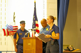 | Ms. Ferris reading a few of the comments of the Cadets to Sgt. Lynch |