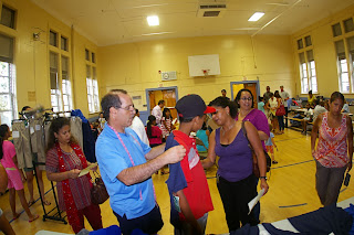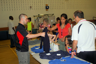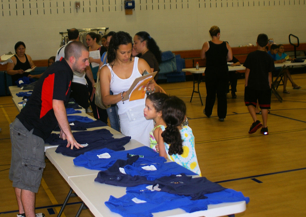 Today was the final day of a week of uniform fitting for all of the public schools of Bogota. It was a full week for the High School uniforms , but only on day for each for Steen , and Bixby.