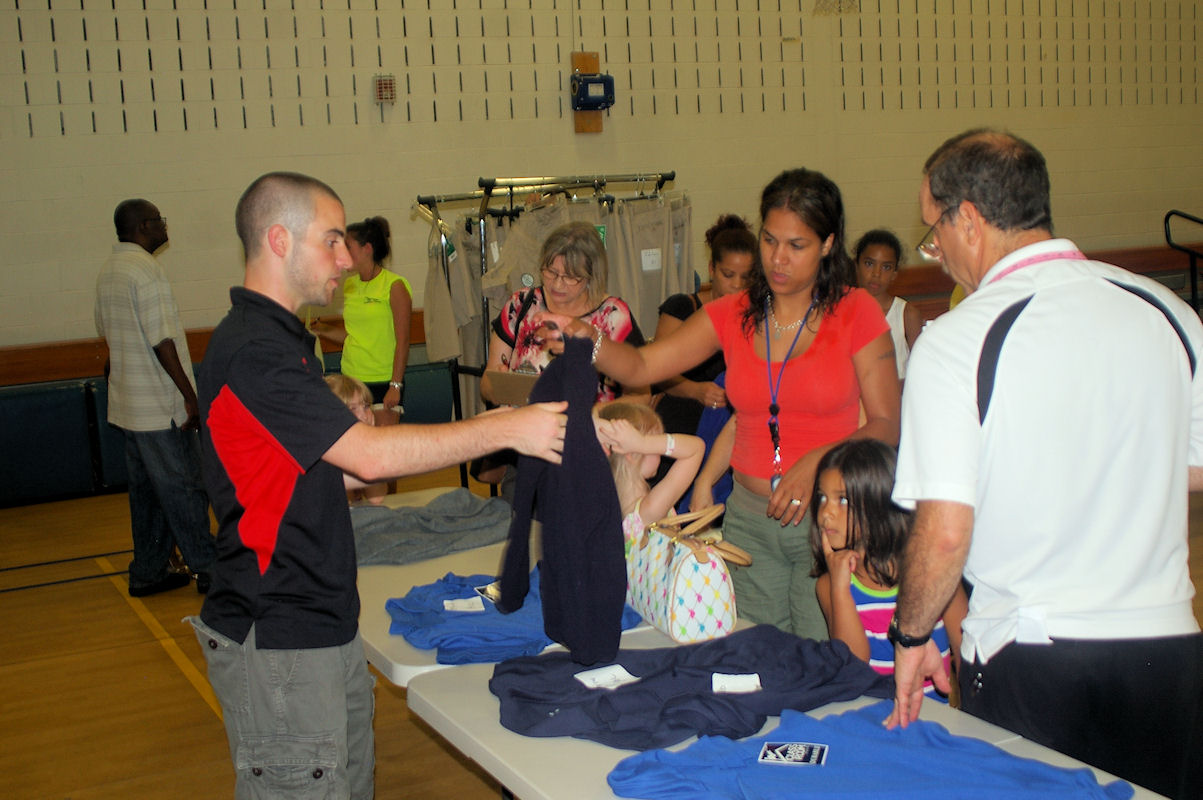 | Parents & Students from both Bixby and Steen looking over the type of clothes available . |